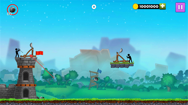 火柴人投石車無限金幣版是一款以火柴人為主題的策略塔防對戰(zhàn)作品,核心玩法圍繞火柴人防御敵人攻城展開,通過操控彈射器向?qū)κ滞稊S石塊,破壞對方的軍事設(shè)施與攻城塔來阻擋進攻,操作方式簡單,只需點擊屏幕拉動彈射器并選擇合適張力,釋放后即可將炮彈射向敵人,若成功擊殺敵人,其腳下的平臺會直接碎裂,整體玩法兼具策略規(guī)劃與操作樂趣。