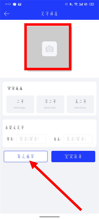 3、進(jìn)入尺寸修改界面后,點(diǎn)擊導(dǎo)入圖片按鈕,選擇需要修改尺寸的圖片。