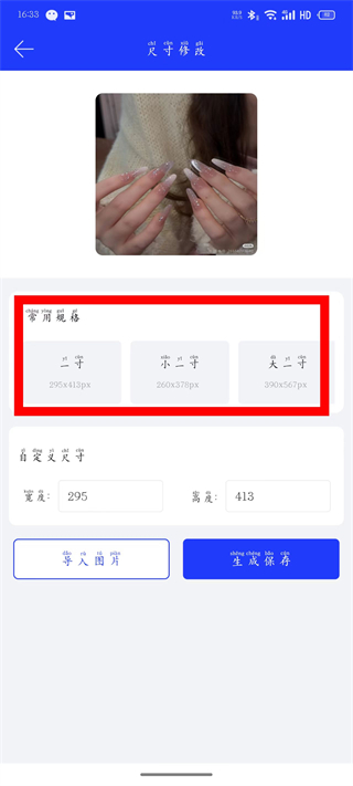 4、圖片導(dǎo)入后,在常用規(guī)格,選擇合適的尺寸類型。