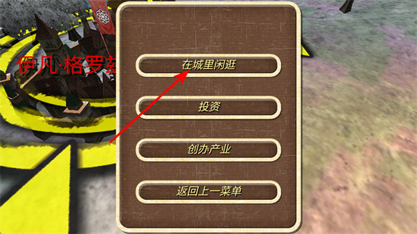 4、進入城內界面后,點擊在城里閑逛選項,這是觸發(fā)城內交互的基礎操作,閑逛可獲取資源、情報或觸發(fā)隨機事件,助力游戲發(fā)展。