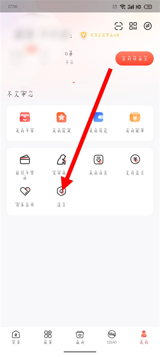 2、在我的頁面,點(diǎn)擊設(shè)置選項(xiàng),進(jìn)入設(shè)置界面。