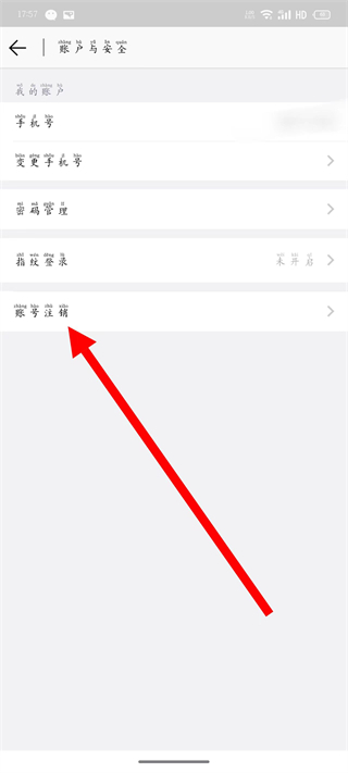 4、在賬戶與安全頁面,點(diǎn)擊賬號(hào)注銷,進(jìn)入賬號(hào)注銷說明頁面。
