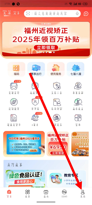 1、打開e福州,點(diǎn)擊底部導(dǎo)航欄我的,進(jìn)入個(gè)人中心頁面。