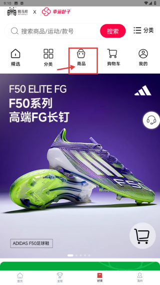 2、在好物頁面,點(diǎn)擊商品分類,瀏覽運(yùn)動(dòng)商品列表。