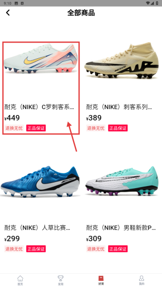3、在商品列表里,找到耐克NIKEC羅刺客系列足球鞋商品條目,點(diǎn)擊進(jìn)入商品詳情頁。