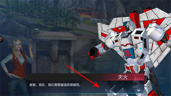 3、根據(jù)劇情提示,與天火等汽車人角色互動,這是推進劇情的關鍵步驟,互動后可獲取建造防御建筑的任務,開啟基地建設玩法。