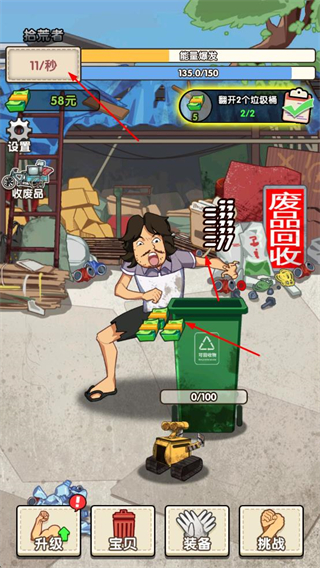 廢品大師手機(jī)版是一款通過不斷翻找垃圾桶賺取資金的游戲,還能和不同NPC展開撿廢品挑戰(zhàn),借助各種裝備可提升翻找廢品的能力,從翻找垃圾桶到實(shí)現(xiàn)撿穿地球的目標(biāo)并非空想,整體充滿各類有趣的網(wǎng)絡(luò)熱門搞笑梗,閑暇時(shí)翻一翻垃圾桶,能收獲不少歡樂。