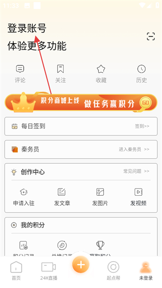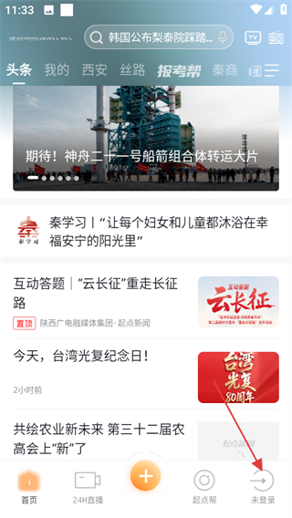 1、打開起點新聞,點擊頁面右下角未登錄,可進入登錄賬號頁面。