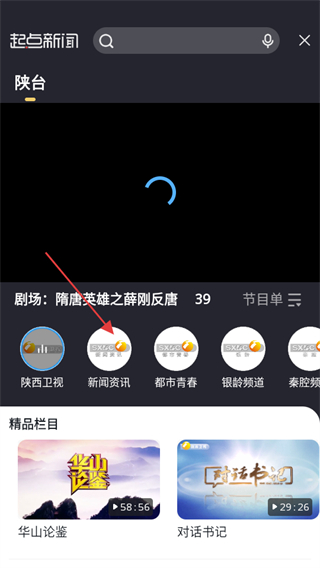 2、在陜臺節(jié)目播放頁面,點(diǎn)擊新聞資訊頻道,可進(jìn)入該頻道的節(jié)目播放頁面。
