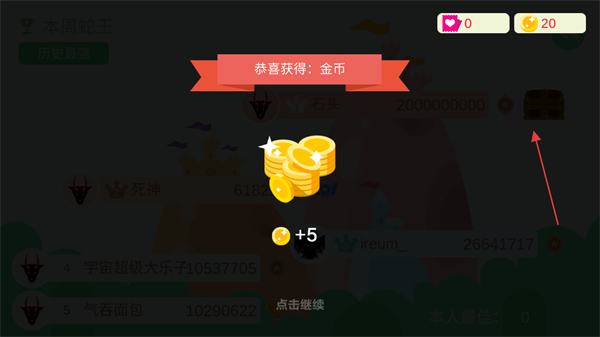 3、主頁下方點擊每周最佳,查看周排名,點擊旁邊的排名寶箱可以領(lǐng)取金幣。