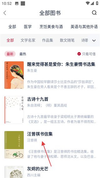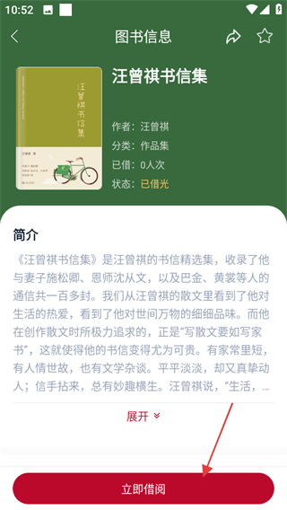2、在全部圖書(shū)頁(yè)面,點(diǎn)擊心儀書(shū)籍如汪曾祺書(shū)信集,可進(jìn)入該圖書(shū)的信息頁(yè)面。