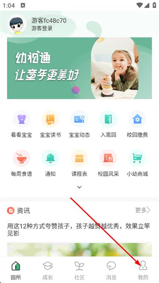 1、打開(kāi)幼視通app,點(diǎn)擊底部導(dǎo)航欄中的我的選項(xiàng)。