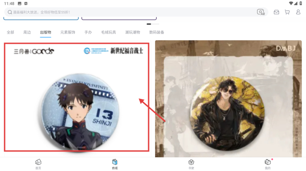 2、在商城頁面,點(diǎn)擊出版物分類,瀏覽動(dòng)漫周邊出版物商品列表。