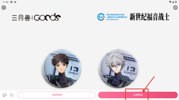 3、在商品列表里,找到新世紀(jì)福音戰(zhàn)士主題徽章商品條目,點(diǎn)擊進(jìn)入商品詳情頁。
