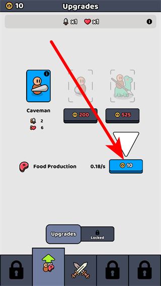 2、在升級界面,還可花費金幣解鎖新的原始人士兵,不同士兵有不同屬性與戰(zhàn)力,根據(jù)對戰(zhàn)需求選擇解鎖,豐富自身的戰(zhàn)斗陣容。