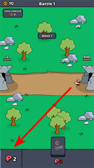 1、點(diǎn)擊Battle按鈕進(jìn)入戰(zhàn)斗,左側(cè)洞穴會(huì)派出己方原始人士兵,沿著路徑進(jìn)攻敵方洞穴,需合理部署士兵以突破敵方防御。