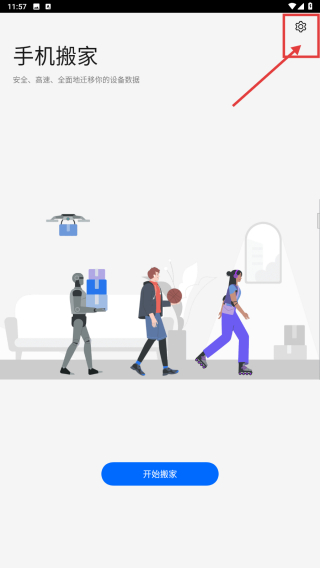 1、打開(kāi)手機(jī)搬家類(lèi)應(yīng)用,點(diǎn)擊右上角設(shè)置按鈕,進(jìn)入設(shè)置頁(yè)面。