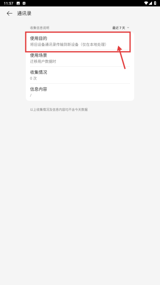 4、在通訊錄信息詳情頁(yè)面,即可查看通訊錄的使用目的等信息。