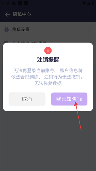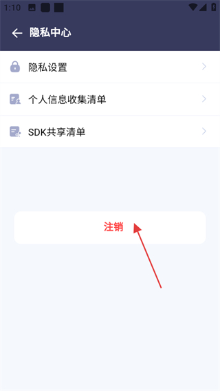 3、在隱私中心頁面,點(diǎn)擊注銷可進(jìn)入注銷提醒頁面。