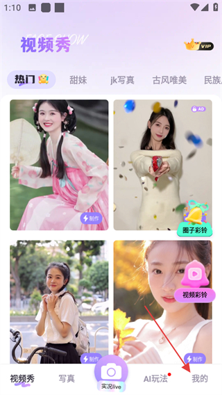 1、打開潮顏相機(jī),點(diǎn)擊頁面右下角我的,可進(jìn)入個(gè)人中心頁面。