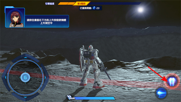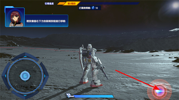 2、在引導(dǎo)階段,操控左側(cè)搖桿進(jìn)行移動(dòng),這是控制高達(dá)移動(dòng)的核心操作,通過搖桿可調(diào)整高達(dá)在場(chǎng)景中的位置,完成移動(dòng)任務(wù)。