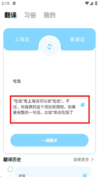 3、翻譯完成后,即可查看對應的翻譯結(jié)果及說明,了解上海話的表達。