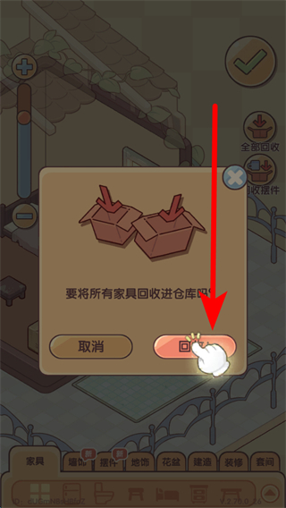 3、布置完成后點擊右上角對勾確認,即可保存裝修成果,同時會獲得金幣等資源獎勵,用于解鎖更多家具與裝飾素材。
