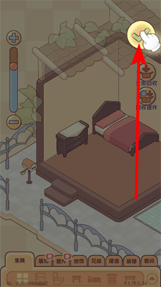 2、可將原有家具全部收回倉庫,點擊確認后清空空間,再從家具庫中挑選喜歡的桌椅、床鋪等進行布置,自由擺放打造風格。