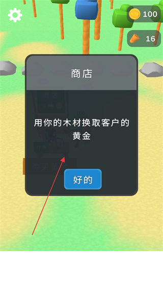 3、進(jìn)入商店,用木材換取客戶的黃金如27木材換3金幣、90木材換10金幣等,積累金幣。