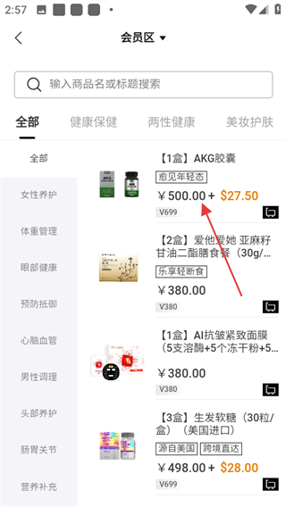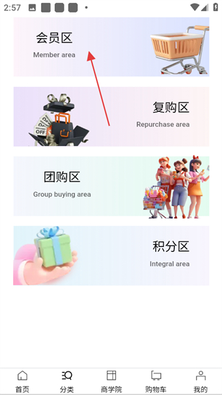 2、在分類頁面,點(diǎn)擊會員區(qū)可進(jìn)入會員區(qū)商品列表頁面。