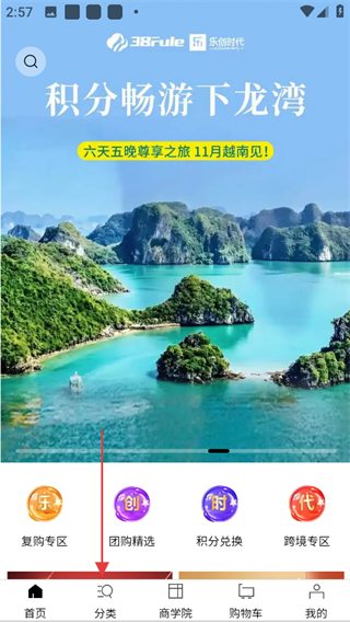 1、打開樂創(chuàng)時代,點(diǎn)擊頁面底部分類,可進(jìn)入分類頁面。