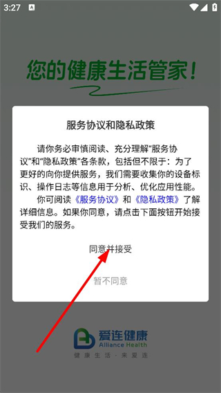1、在服務(wù)協(xié)議和隱私政策彈窗中,點(diǎn)擊同意,進(jìn)入首頁(yè)。