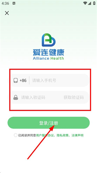 4、輸入手機(jī)號(hào)與驗(yàn)證碼,點(diǎn)擊登錄/注冊(cè),完成賬號(hào)登錄。