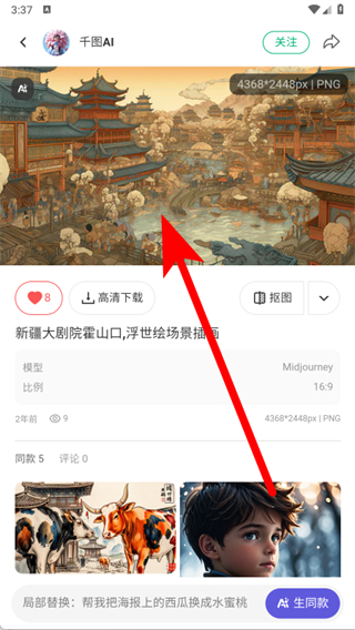 3、在插畫(huà)詳情頁(yè),查看插畫(huà)的尺寸、創(chuàng)作模型等信息。