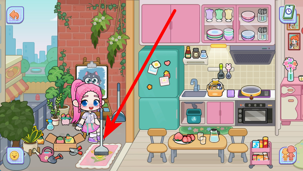 2、可讓角色拿起拖把打掃地面,整理綠植與快遞箱,也能在廚房使用各類廚具餐具,體驗家務(wù)與烹飪的樂趣。