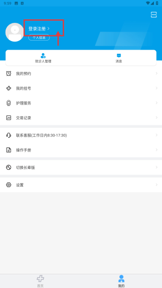 1、打開(kāi)醫(yī)療類應(yīng)用,點(diǎn)擊底部我的選項(xiàng),進(jìn)入個(gè)人中心頁(yè)面。
