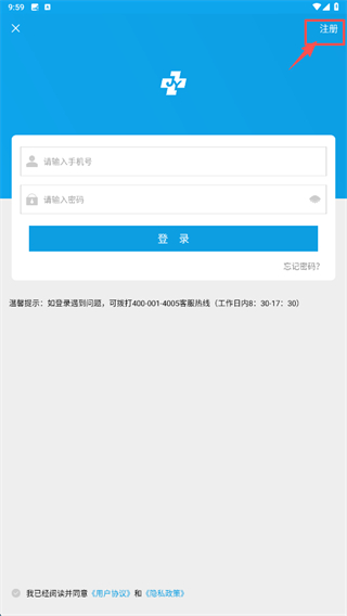 3、在登錄界面,點(diǎn)擊注冊(cè)選項(xiàng),進(jìn)入注冊(cè)頁(yè)面。