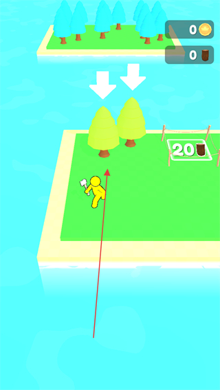 工藝島內(nèi)置菜單是一款主打休閑建造作品,采用明艷的3D畫風(fēng),畫面設(shè)計簡約清爽,操作玩法簡單,通過虛擬搖桿控制火柴人移動,當(dāng)火柴人靠近地圖邊緣或?qū)?yīng)建筑物區(qū)域時,會自動獲取資源用于建造或擴建,整體游玩無較大壓力,上手難度低,進入后需先采集木頭建造交易所,建成后可用木頭兌換金幣獲取兩種基礎(chǔ)資源。