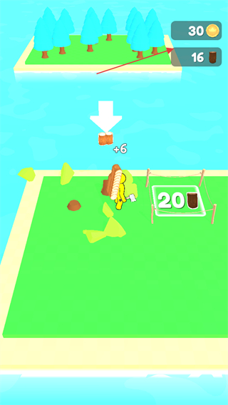 3、將木材運到指定區(qū)域,獲取金幣和木材資源,提升資源儲備。