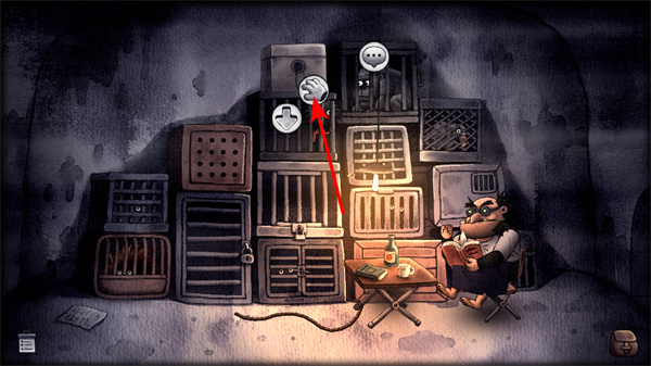 4、點擊牢房內(nèi)的向下箭頭裝置,這是推進場景探索的基礎(chǔ)操作,點擊后可觸發(fā)機關(guān),進入下層區(qū)域,解鎖新的劇情與謎題。