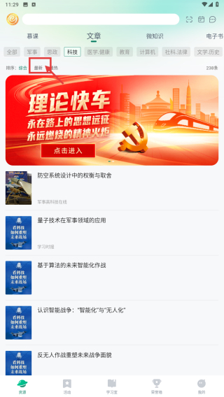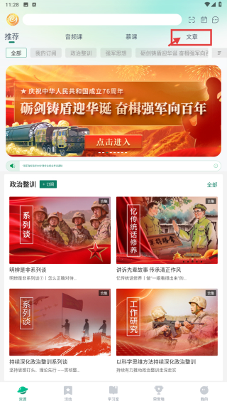 1、打開軍事文化類應(yīng)用,點擊文章選項,進入文章頁面。
