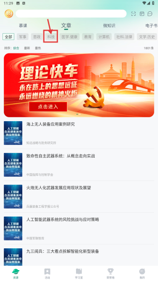 2、在文章頁面,點擊科技分類選項,瀏覽科技類文章列表。