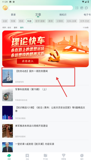 4、在篩選結(jié)果中,找到防務(wù)動態(tài)國防一周防務(wù)要聞文章條目,點擊即可查看該文章內(nèi)容。