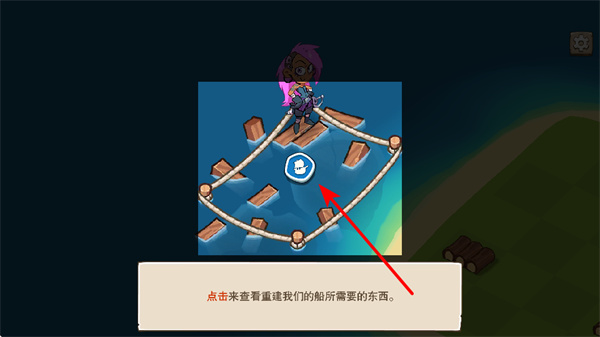 2、點(diǎn)擊船只重建提示區(qū)域,這是了解修船資源的核心操作,點(diǎn)擊后可查看重建船只所需的材料,規(guī)劃收集路線。