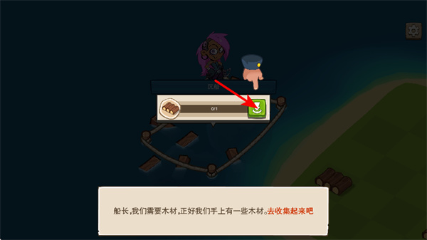 3、點(diǎn)擊木材收集按鈕,這是獲取修船材料的關(guān)鍵步驟,點(diǎn)擊后可開始收集木材,為船只重建積累基礎(chǔ)資源。