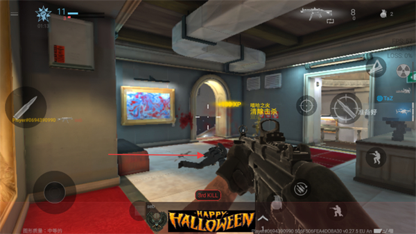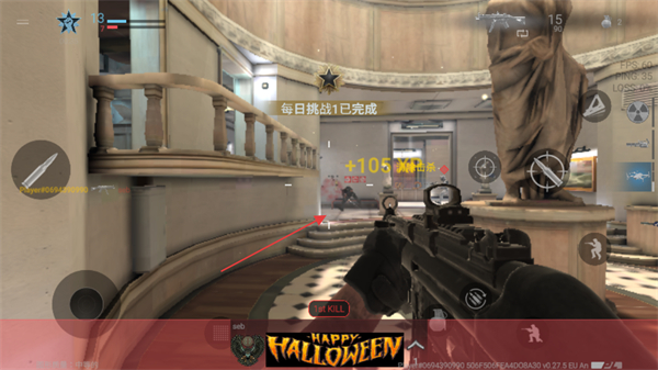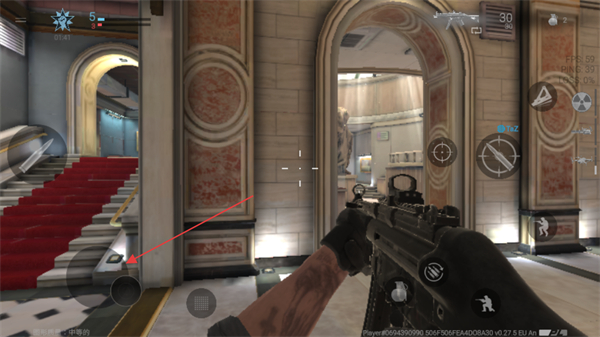 1、操控移動搖桿在建筑內(nèi)移動,利用掩體如柱子躲避敵人,尋找進攻時機。