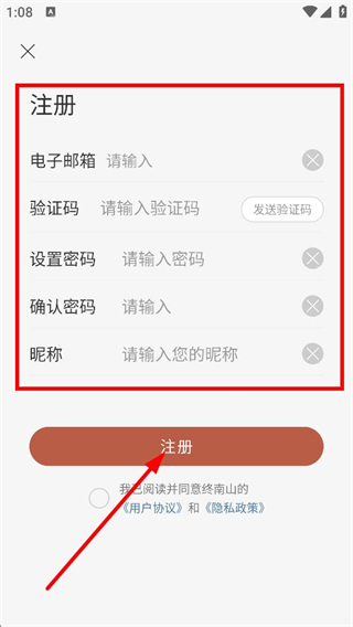 4、輸入電子郵箱、驗證碼,設(shè)置并確認(rèn)密碼,點擊注冊,完成賬號注冊。