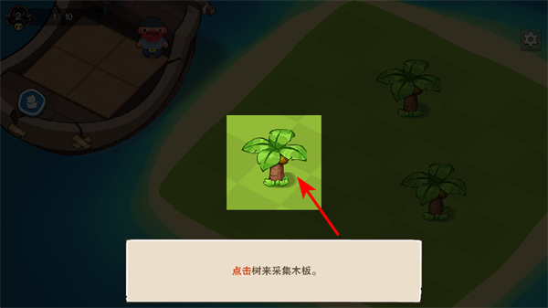 1、進(jìn)入游戲后,點(diǎn)擊樹木采集木板,這是獲取造船材料的關(guān)鍵操作,積累資源,滿足船只修復(fù)升級(jí)需求。