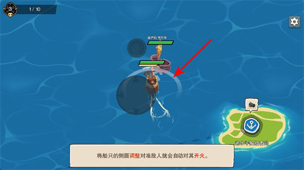 4、調(diào)整船只側(cè)面對(duì)準(zhǔn)敵人,這是高效攻擊的基礎(chǔ)操作,調(diào)整后可自動(dòng)開火,快速的消滅海上的敵人。