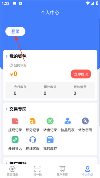 2、在個(gè)人中心頁(yè)面,點(diǎn)擊登錄可進(jìn)入登錄賬號(hào)操作頁(yè)面。